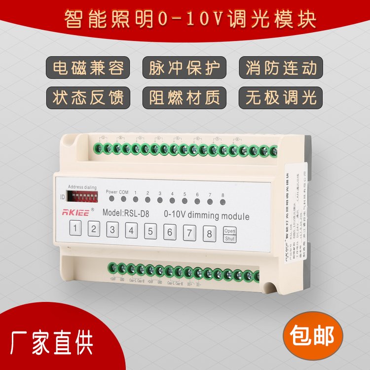 睿控科技牌的智能照明控制系统0-10V调光模块灯光明亮度调节不受负载大小限制产品:估价:380.00,规格:RSL-D8,产品系列编号:RSL-D8 发布日期:2025-10-15