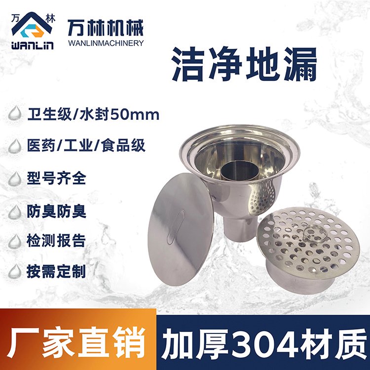万林厂家供应清洁食品厂制药厂工业车间不锈钢防臭洁净净化地漏