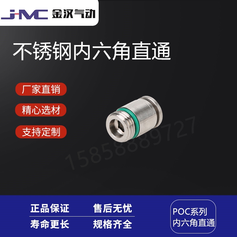 金汉气动牌的不锈钢304气动快速快插接头POC内六角螺纹快插直通气嘴产品:估价:6.3,规格:POC,产品系列编号:齐全 发布日期:2019-12-11