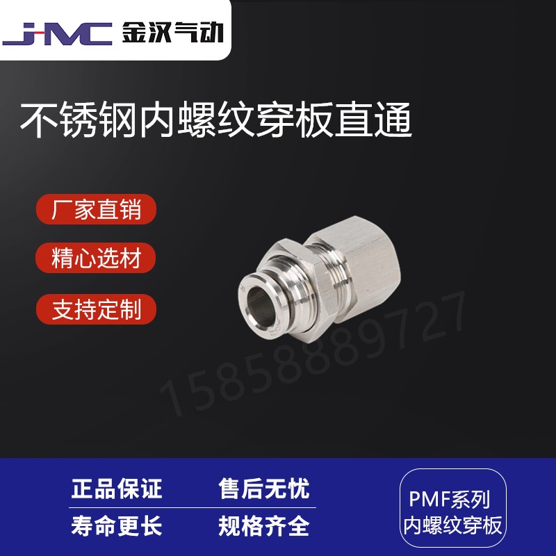 金汉气动牌的不锈钢304内螺纹穿板快插直通PMF气动快速快插接头产品:估价:9.4,规格:PMF,产品系列编号:齐全 发布日期:2019-12-12