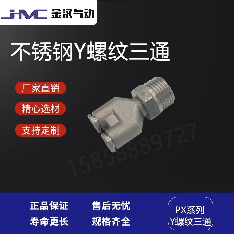 金汉气动牌的不锈钢304螺纹Y型快插三通PY气动快速快插接头产品:估价:15,规格:PX,产品系列编号:齐全 发布日期:2019-12-12