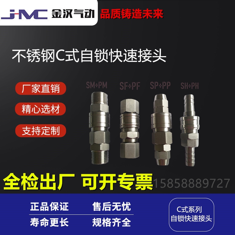 金汉气动牌的不锈钢304插入式自锁C式高压快速接头产品:估价:46,规格:C式,产品系列编号:齐全 发布日期:2019-12-16