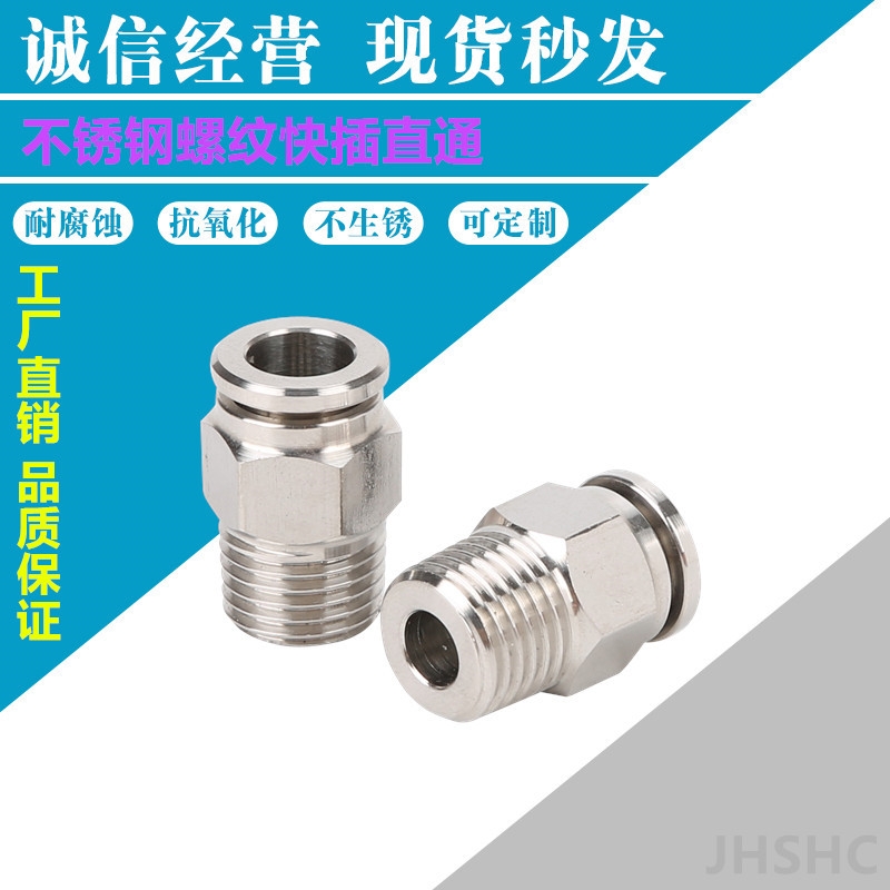 温州金汉气动不锈钢螺纹快插直通PC气管快速快插接头
