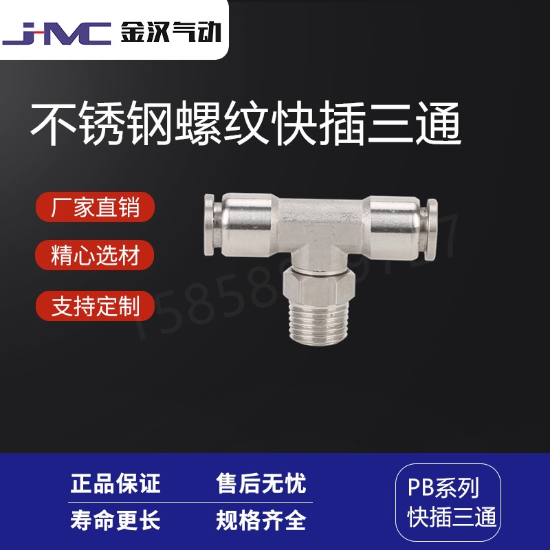 金汉气动牌的不锈钢304气动快速快插接头PB螺纹快插三通气嘴产品:估价:不锈钢螺纹快插三通,规格:PCF,产品系列编号:齐全 发布日期:2019-12-9