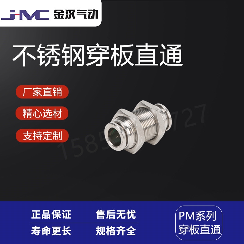 金汉气动牌的不锈钢304气动快速快插接头PM穿板快插直通气嘴产品:估价:8.8,规格:PM,产品系列编号:齐全 发布日期:2019-12-10