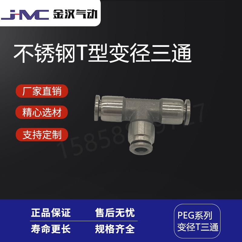 金汉气动牌的不锈钢304气动快速快插接头PEG变径T型快插三通气嘴产品:估价:12.5,规格:PEG,产品系列编号:齐全 发布日期:2019-12-11