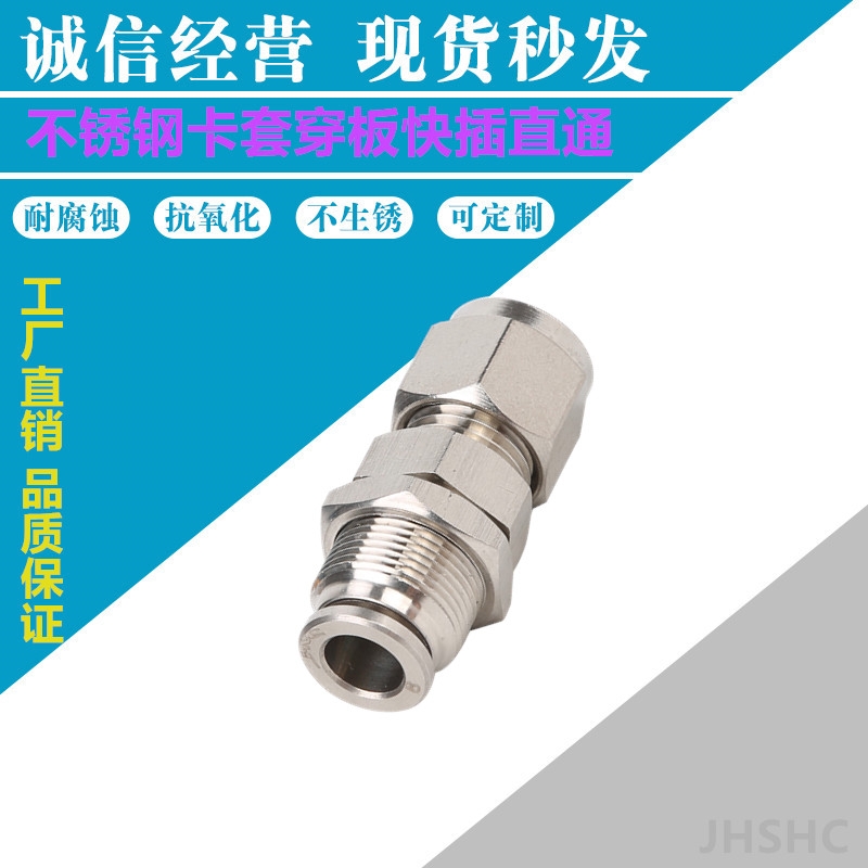 不锈钢气动卡套穿板快插直通接头PK气管快速快插气嘴